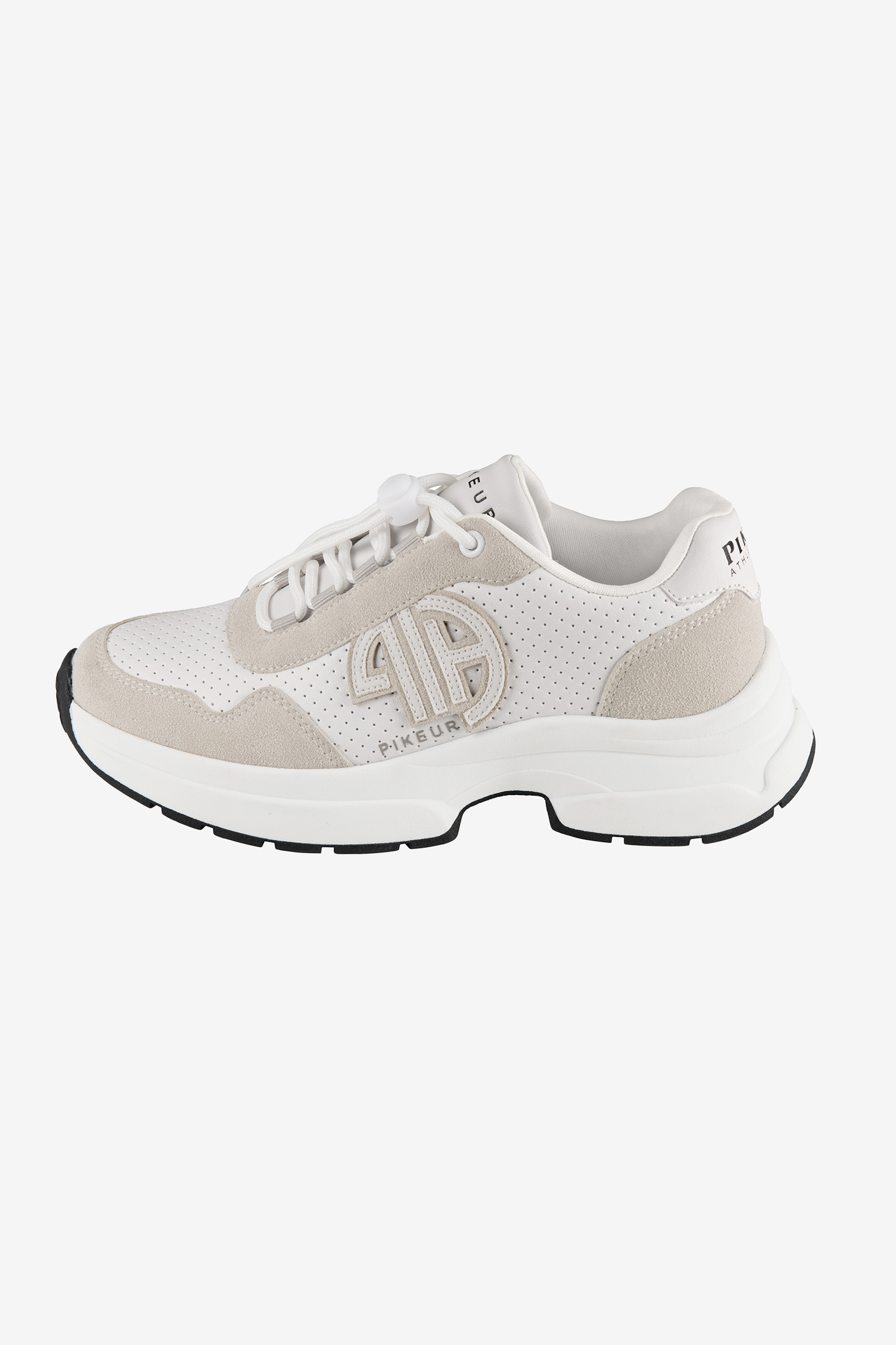 Stilfulde sneakers fra Pikeur. Ydermaterialet på de hvide sko er lavet af vegansk læder med perforeret look. De blå er lavet af vegansk velourlæder, også med perforeret look. Designet med et logo på ydersiden og mærkning på hælkappen.