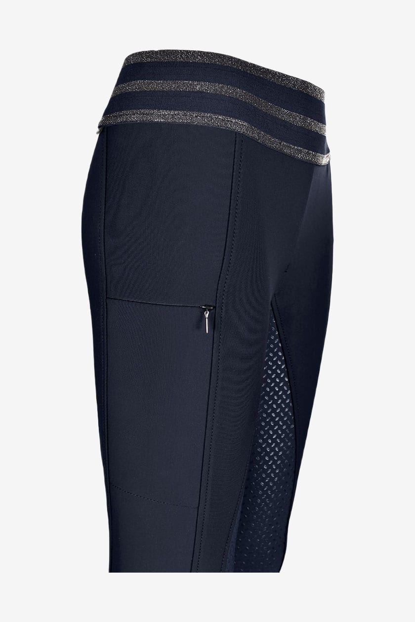 Vollbesatz-Reithose in Dunkelgrau von Pikeur. Reithose mit hohem Bund und elastischem Bund aus einem weichen und funktionalen Material. Die Hose verfügt über Silikon-Grip und ist ein schmales Modell mit extra Beinlänge. Die Hose ist mit einer Tasche für ein Mobiltelefon ausgestattet, die mit einem Reißverschluss schließt, sowie Pikeur Strass auf dem rechten Oberschenkel.