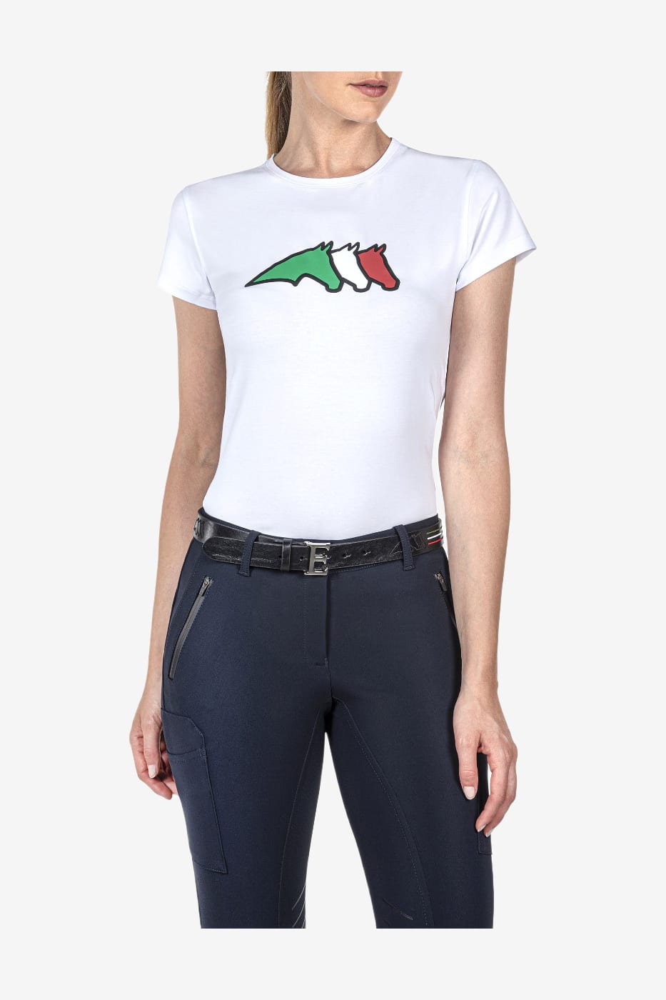 Ein sehr leichtes und angenehmes T-Shirt mit dem Team-Logo auf der Brust. Tailliertes Modell, das sowohl zu Jeans als auch zu Reithosen passt.