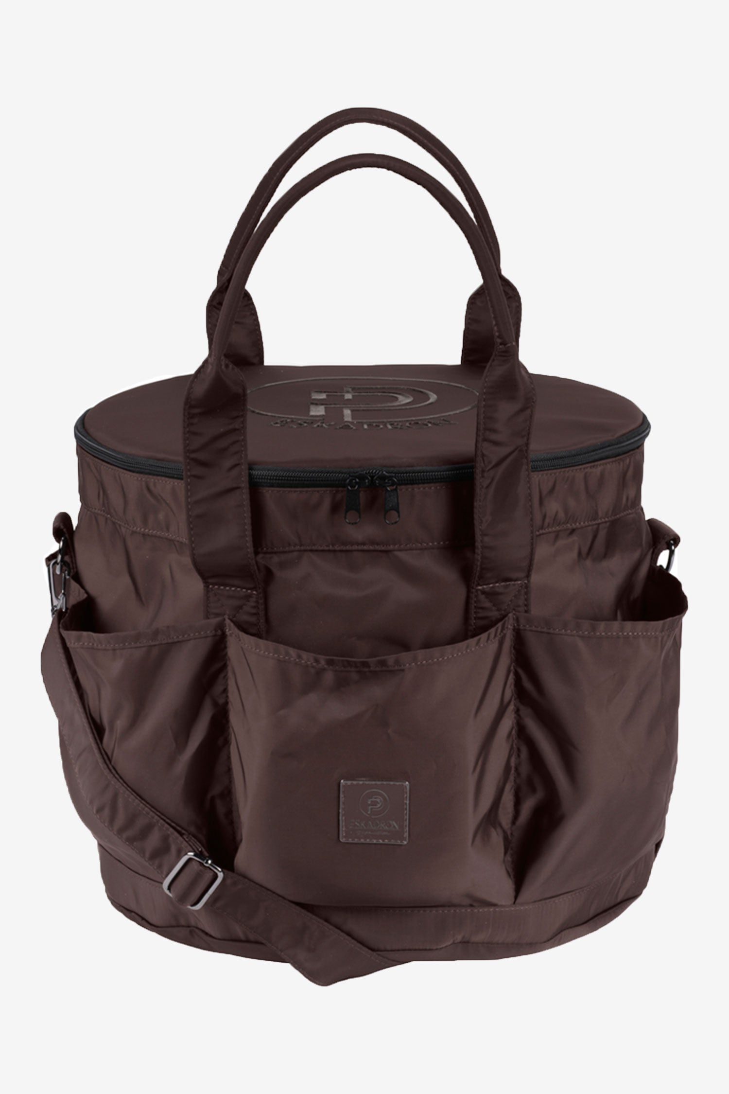 Praktische Putzzeugtasche von Eskadron aus strapazierfähigem Material. Mehrere Taschen außen und innen erleichtern das Sortieren und Organisieren. Sie wird mit einem "Deckel" verschlossen, der verhindert, dass Bürsten herausfallen oder Schmutz eindringt.