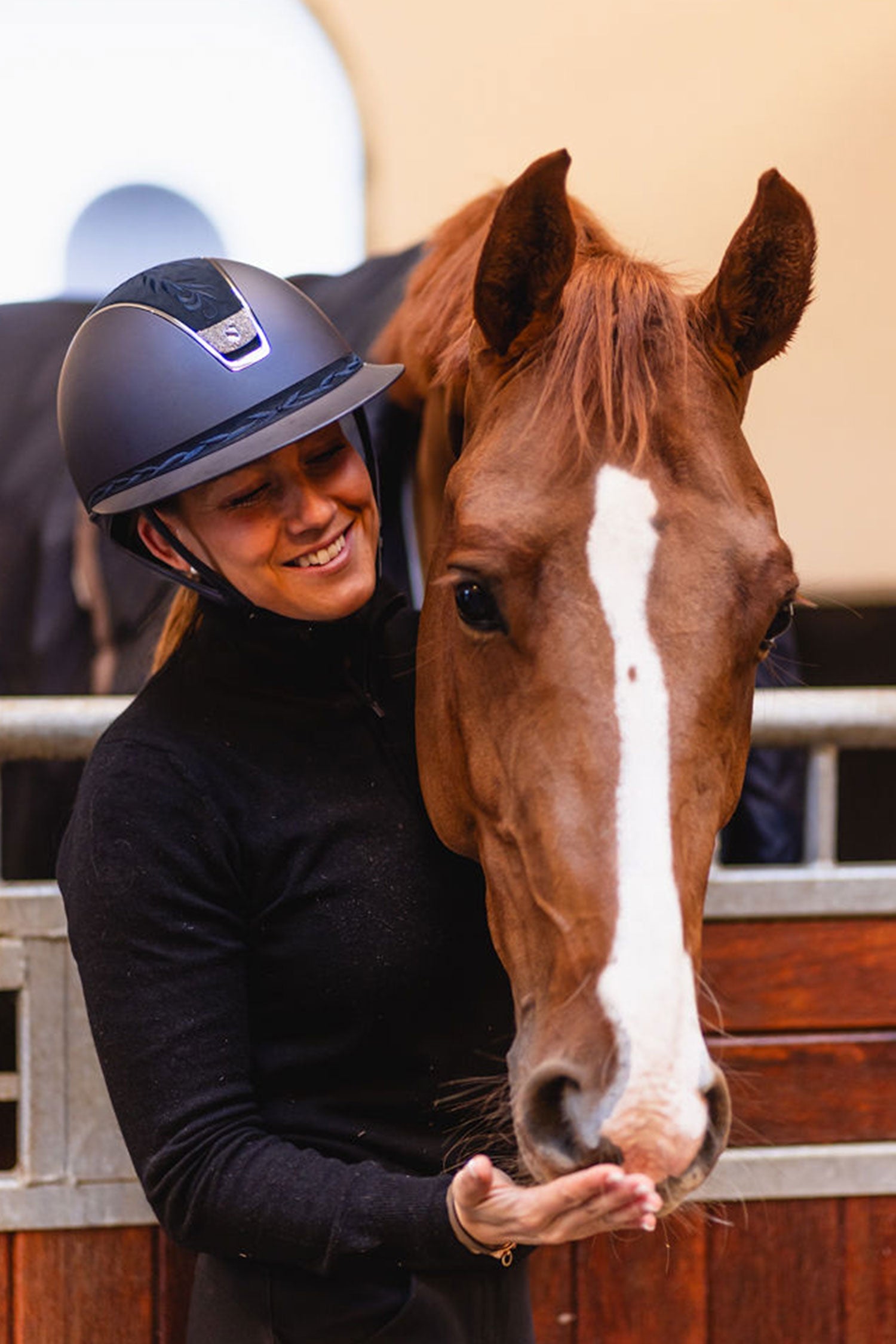 Der Helm besteht aus modernsten Materialien, damit Reiter ihren Sport uneingeschränkt genießen können: