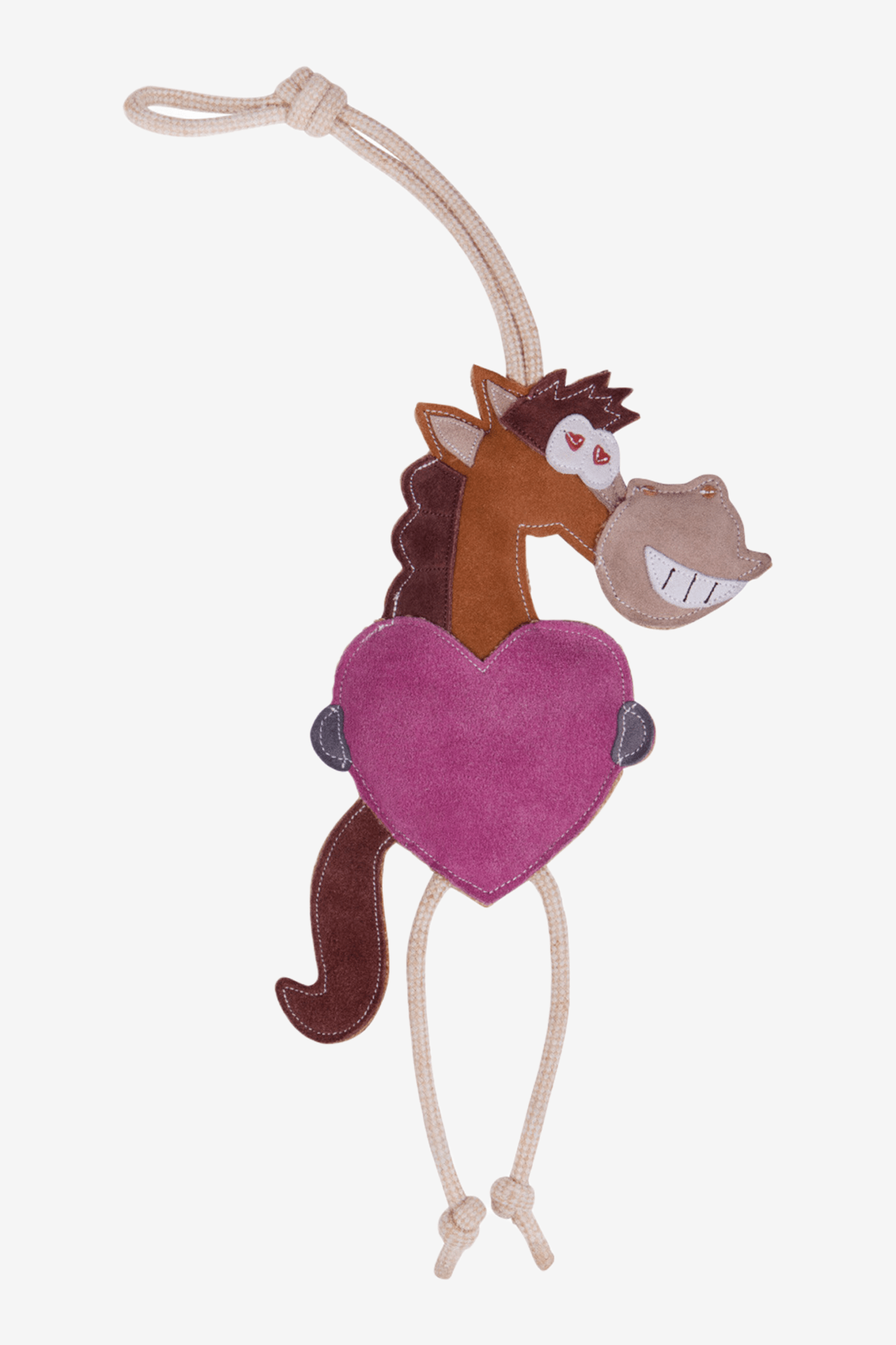 Ein Valentinstagsfreund für dein Pferd. Gemütliches Pferdespielzeug in Form eines Pferdes mit einem Herz.