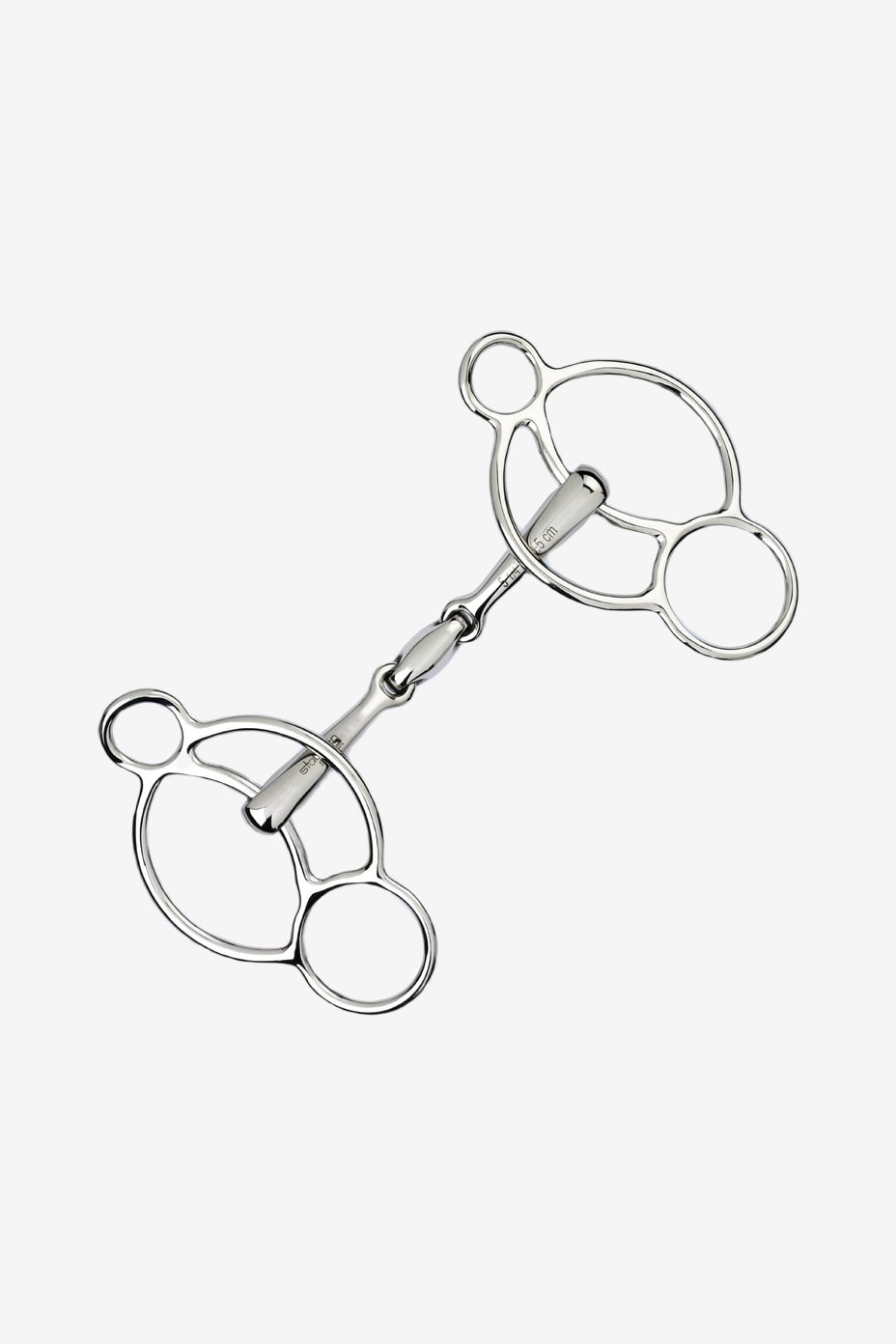 Dieses Gebiss verriegelt sich und wird gerade im Maul, wenn das Pferd stark wird oder sich auf das Gebiss legt. Dadurch kann sich das Gebiss nicht zusammenklappen und bleibt stabiler im Maul. Die Seitenteile haben einen aufzugähnlichen Hebeleffekt und verstärken die Wirkung auf den Zügel, wenn das Pferd dagegen geht. Sobald der Reiter die Hand nachgibt, kehrt das Gebiss in seine ursprüngliche Position zurück und wird sanfter und beweglicher im Maul. Das 3-Ring-Gebiss hilft Reitern, die nicht die Technik oder Kraft haben, einem starken Pony/Pferd entgegenzuwirken, ohne zu viel Kraft aufwenden zu müssen.
