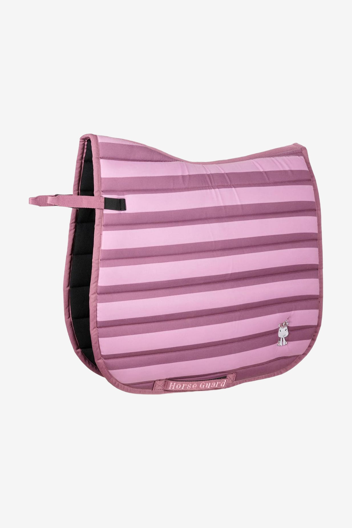 A cute pad with a striped pattern and a sweet little embroidered unicorn.