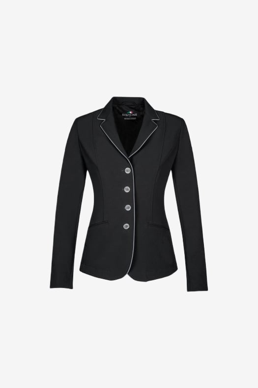 Elegant and stylish show jacket with a thin grey piping. Stretchy and flexible functional material that gives you great freedom of movement in the saddle.