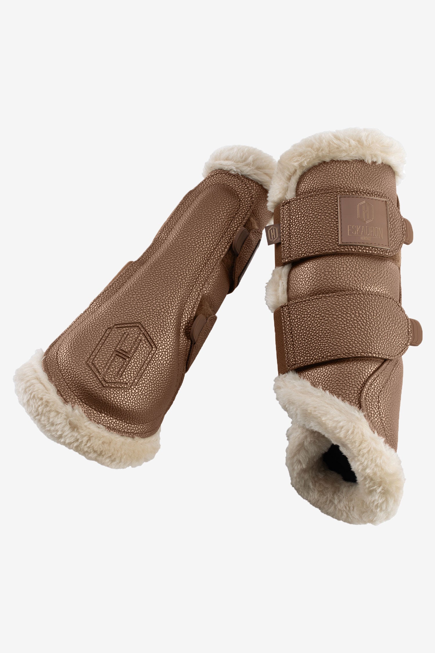 Damask with an exterior of leather imitation and a soft edge of lovely sheepskin imitation. Reinforced inside to protect against impacts. Strong Velcro with elasticity and logo on the top Velcro.