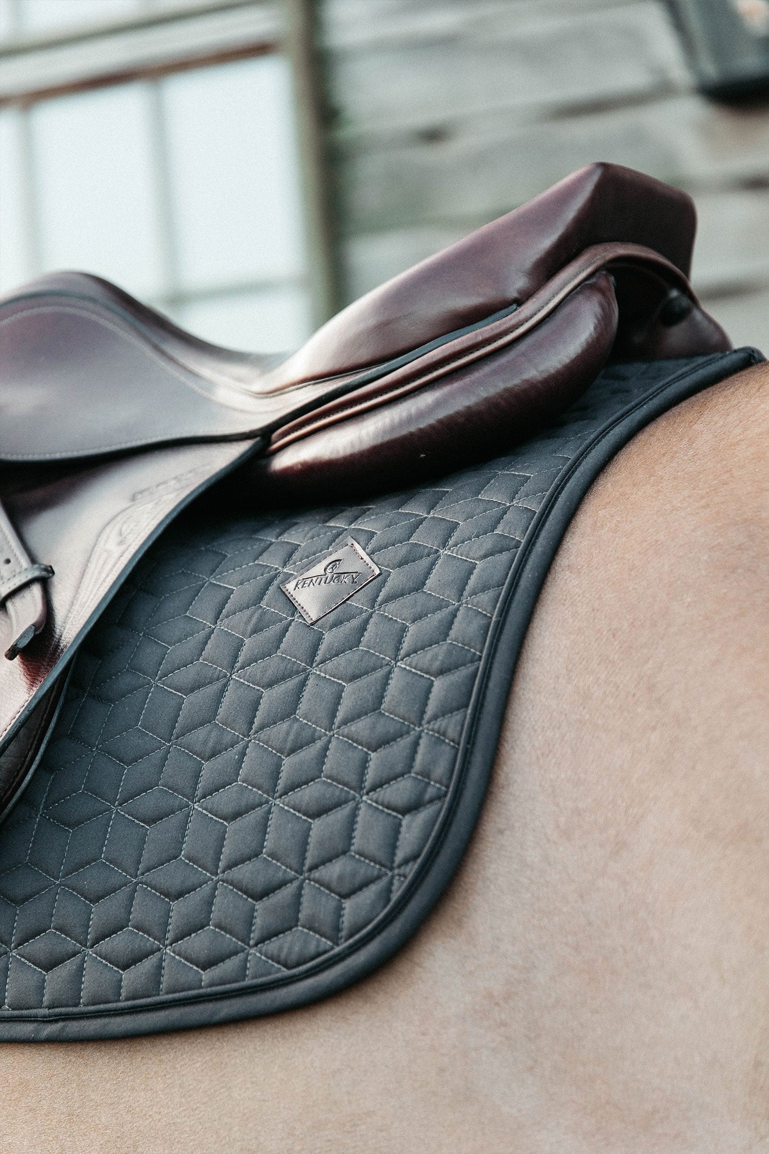 A stylish saddle pad from Kentucky with a timeless and elegant design. Perfect for embroidering a sponsor or perhaps the stable's name. The outer side is made of cotton-like polyester with attractive cubic quilting. On the left side of the saddle pad, there is a vegan leather patch with the Kentucky logo.