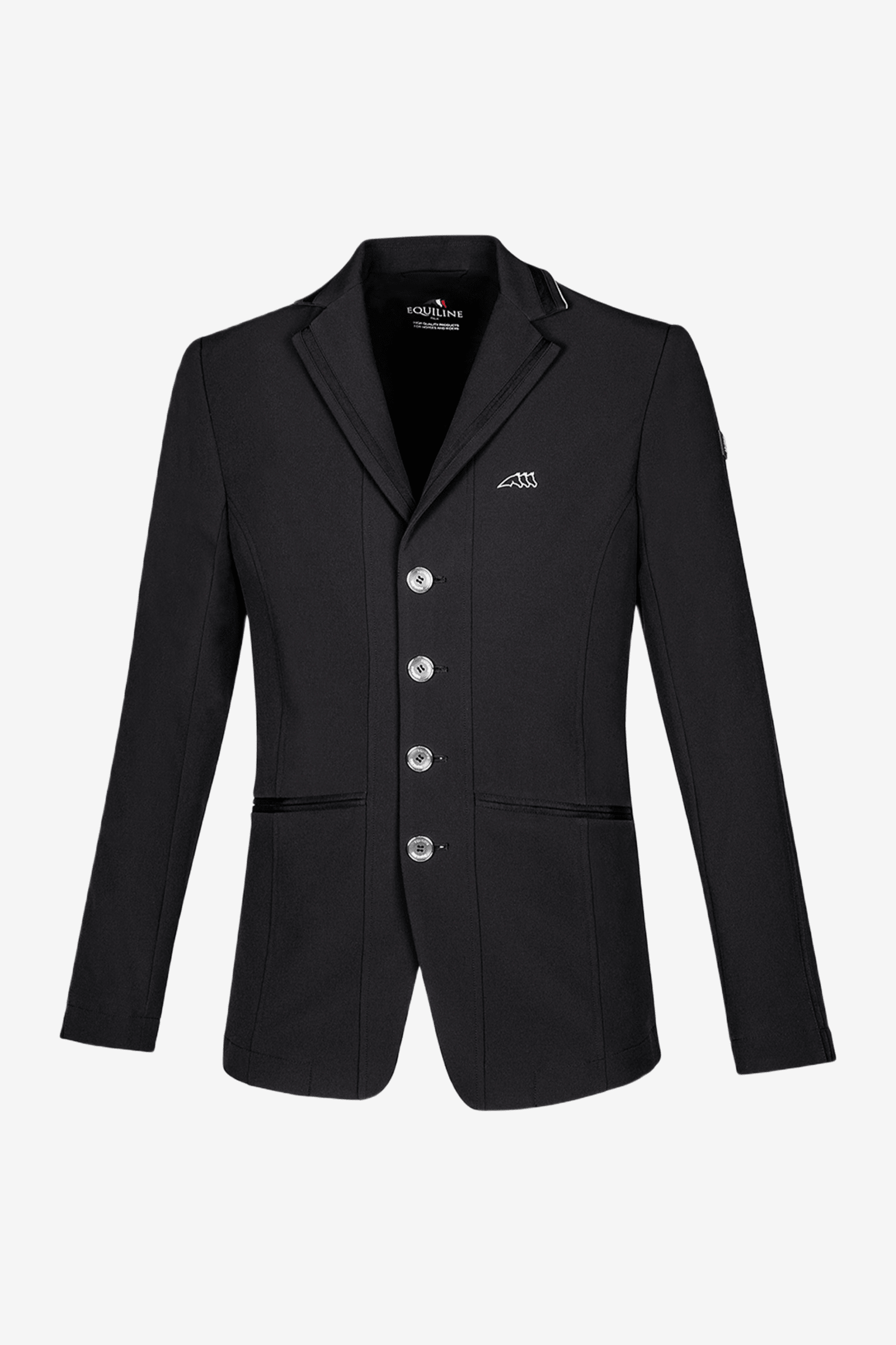 Veste homme élégante avec des détails discrets. Petit logo Equiline sur la poitrine. Bonne élasticité et fonction respirante, confectionnée dans un tissu fonctionnel fin et léger qui offre une liberté de mouvement totale en selle.