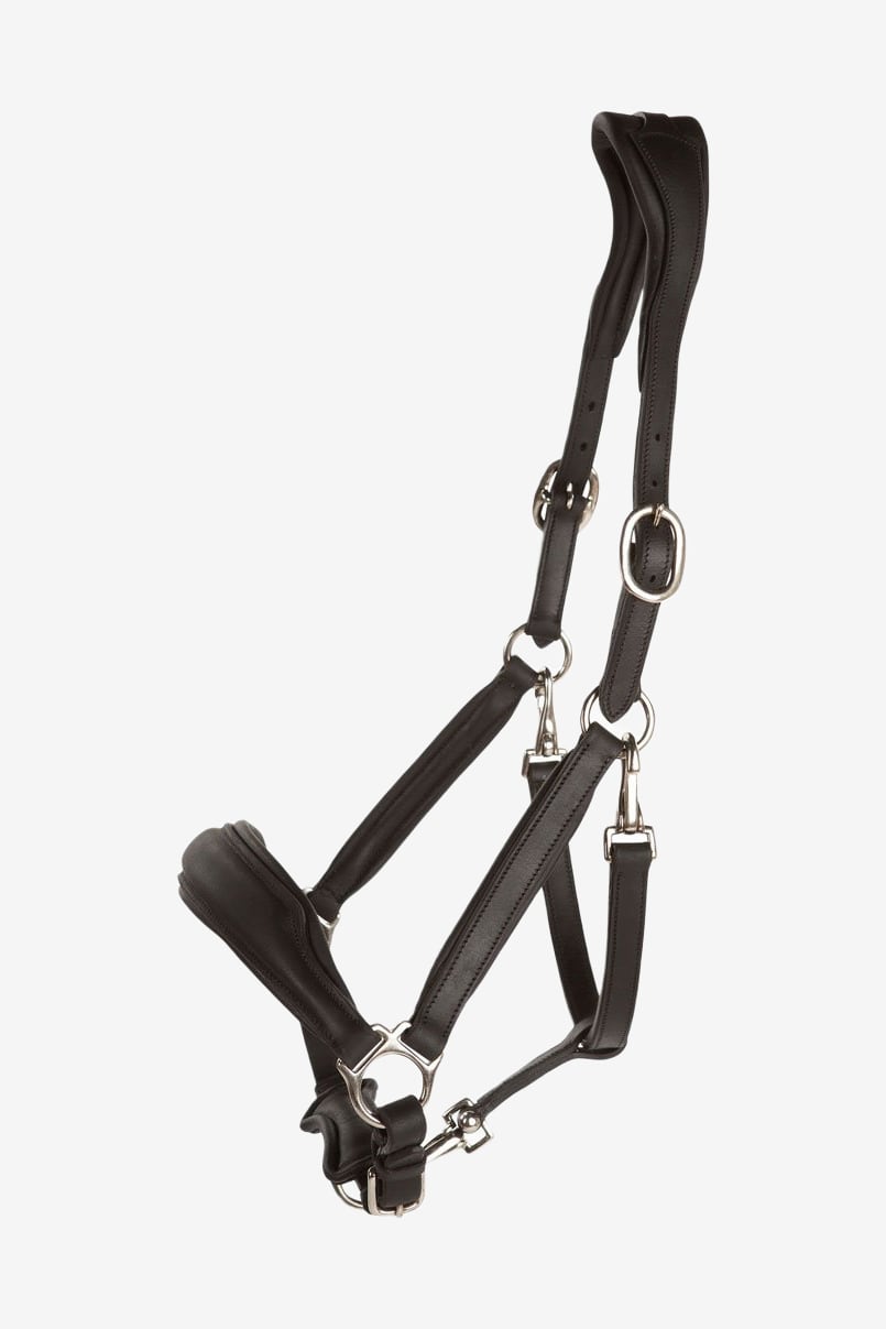 Licol en cuir très élégant en cuir de buffle résistant. Têtière anatomique matelassée et muserolle.