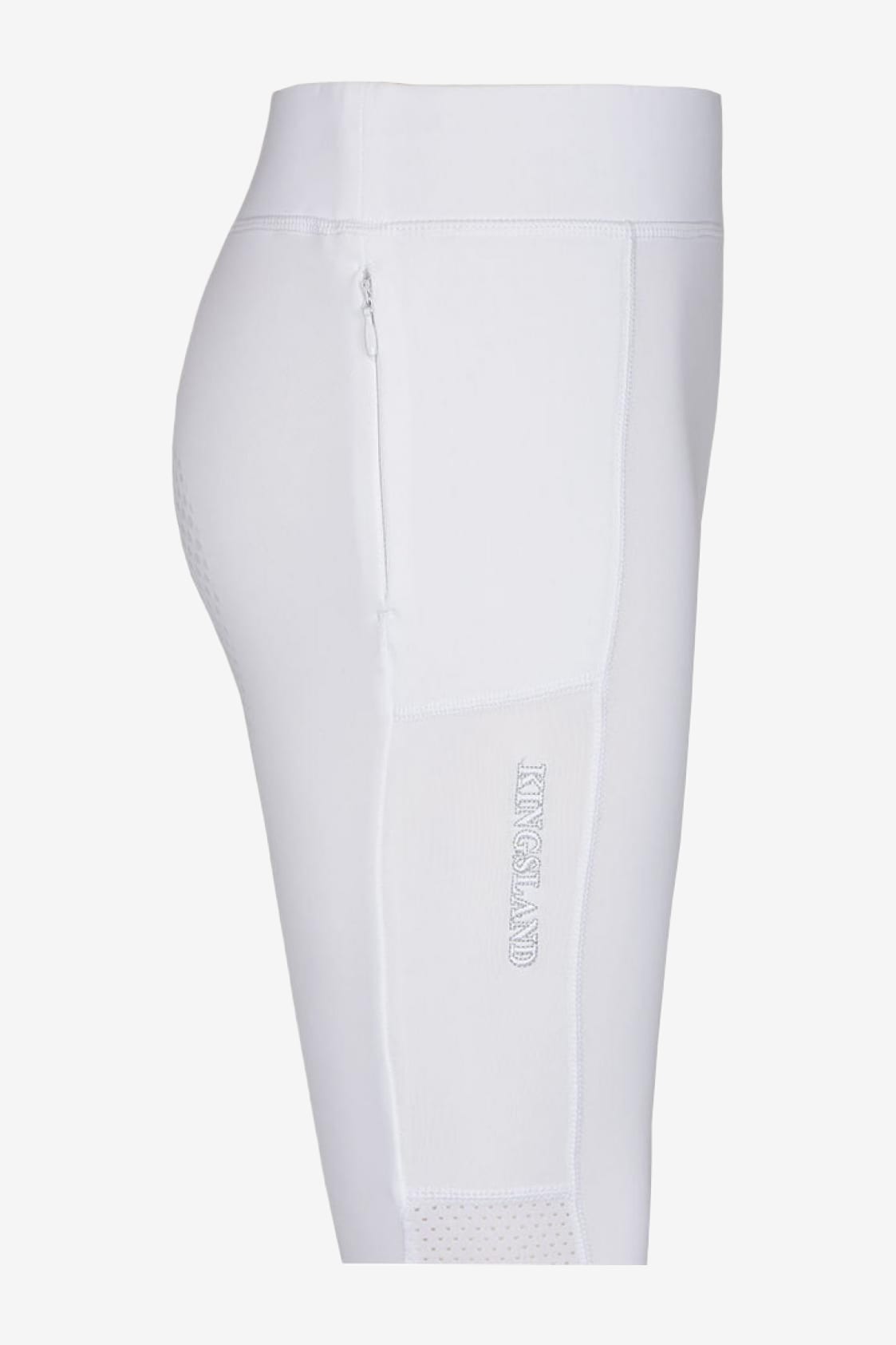 Kemmie van Kingsland is een legging voor junioren met hoog comfort en een brede tailleband die stabiliteit en pasvorm biedt. Kemmie is een rijlegging met full seat grip die uitstekende grip in het zadel geeft. Elastische beenafsluitingen voor extra comfort onder rijlaarzen zonder te schuren. Verborgen telefoonzakje met verborgen rits. Gedetailleerd met Kingsland-logo op het dijbeen en op de achterkant van de tailleband.