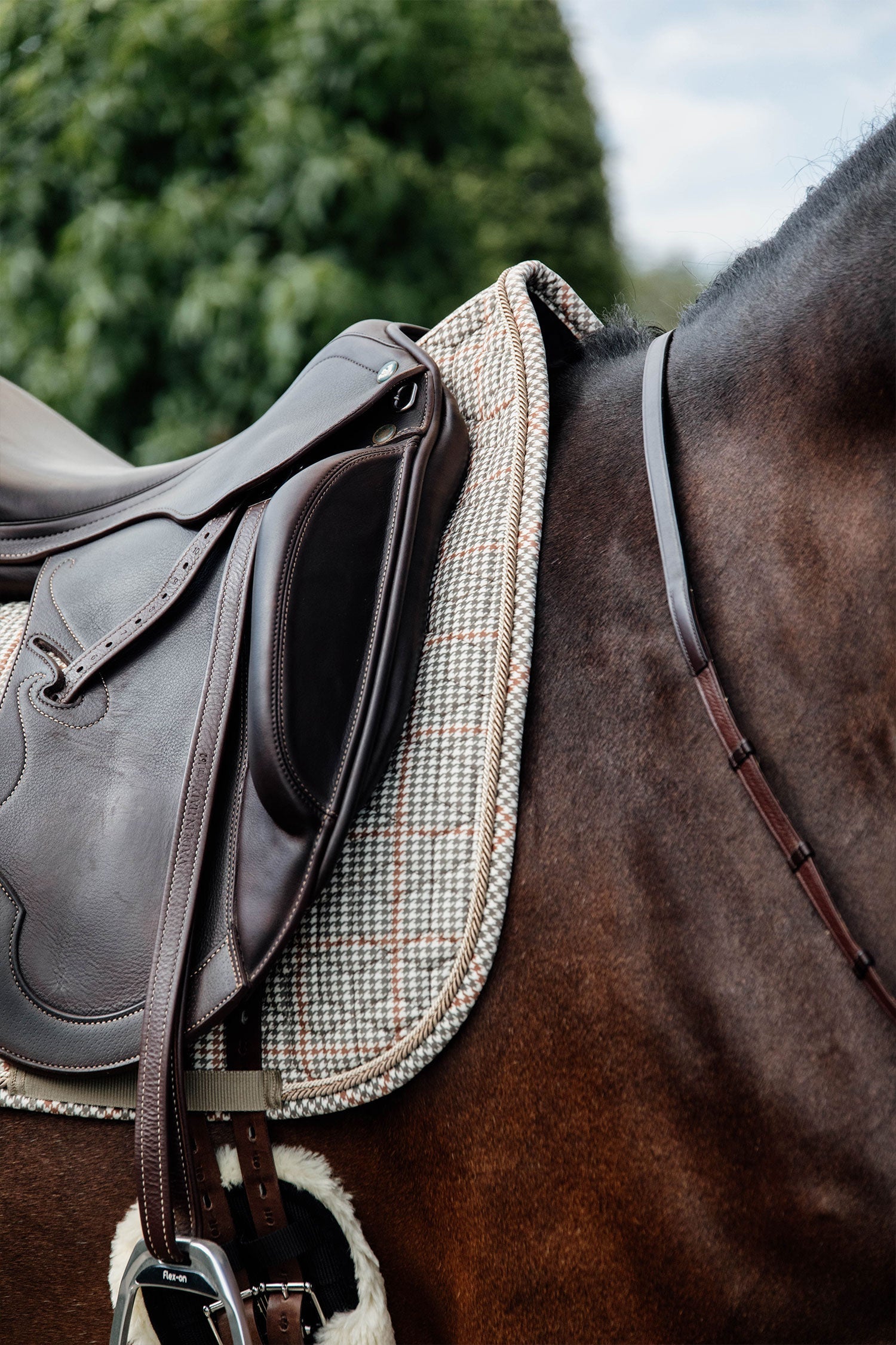 Czaprak pied-de-poule posiada pikowany wzór gwiazdy oraz podwójne pikowanie w podobnych tonacjach, co nadaje mu wyjątkowy charakter. Czaprak ma anatomiczny krój, który zapewnia maksymalny komfort koniowi, chroniąc go przed otarciami.