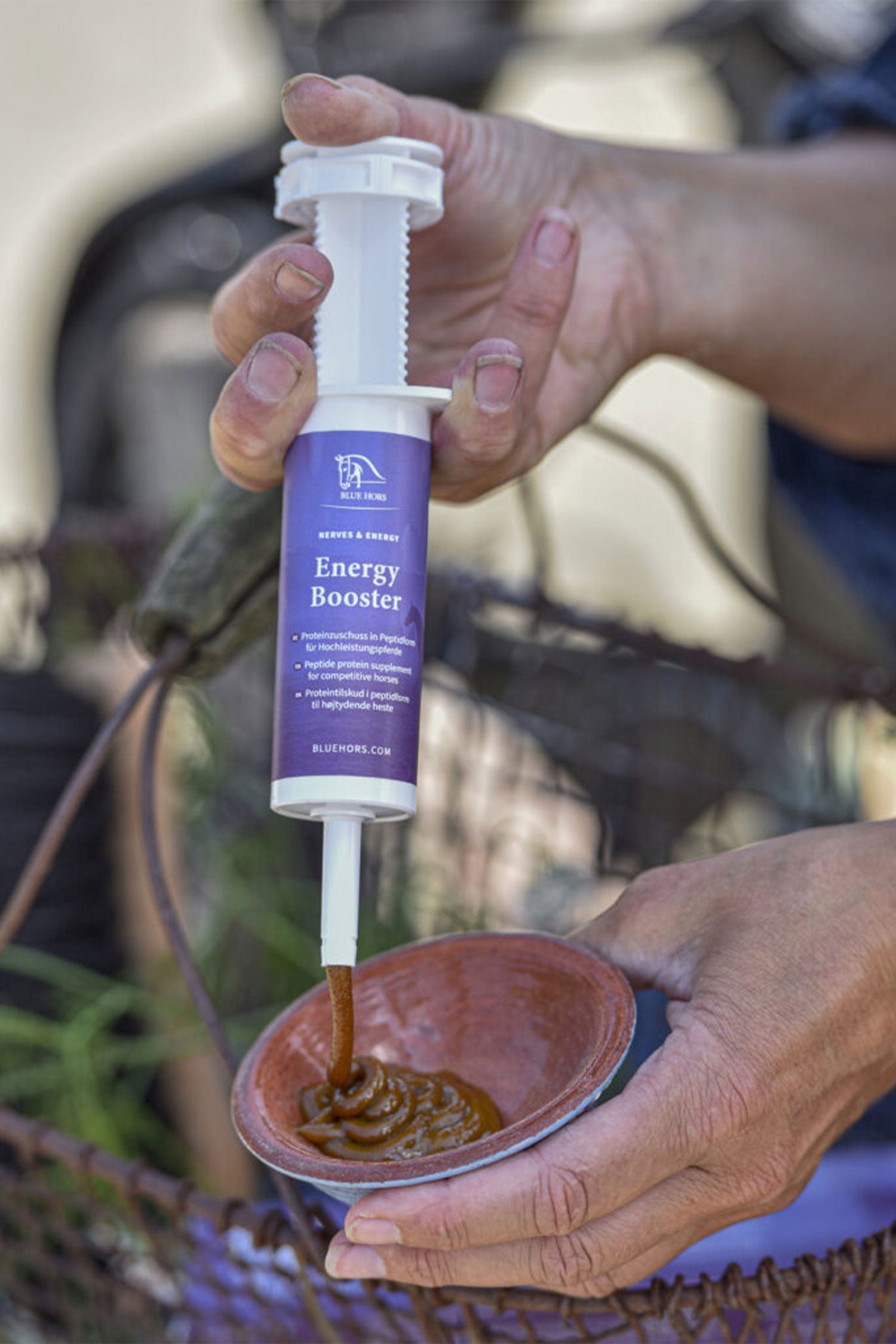 Dosering: Stor hest: Giv ½-1 sprøjte direkte i munden, ca. 1-2 timer før krævende træning/deltagelse i konkurrence. Pony: Halvdelen af den mængde, som en stor hest får, i forhold til hestens vægt. Hesten skal have fri adgang til vand.