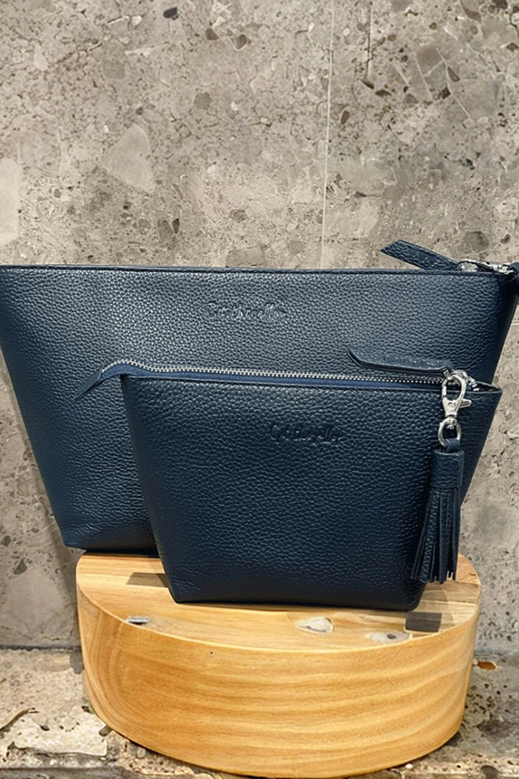 Denne store luksuriøse toilettaske kan fyldes med de fleste flasker, krukker og børster. Match den med den lille makeup taske, og du har et komplet sæt.