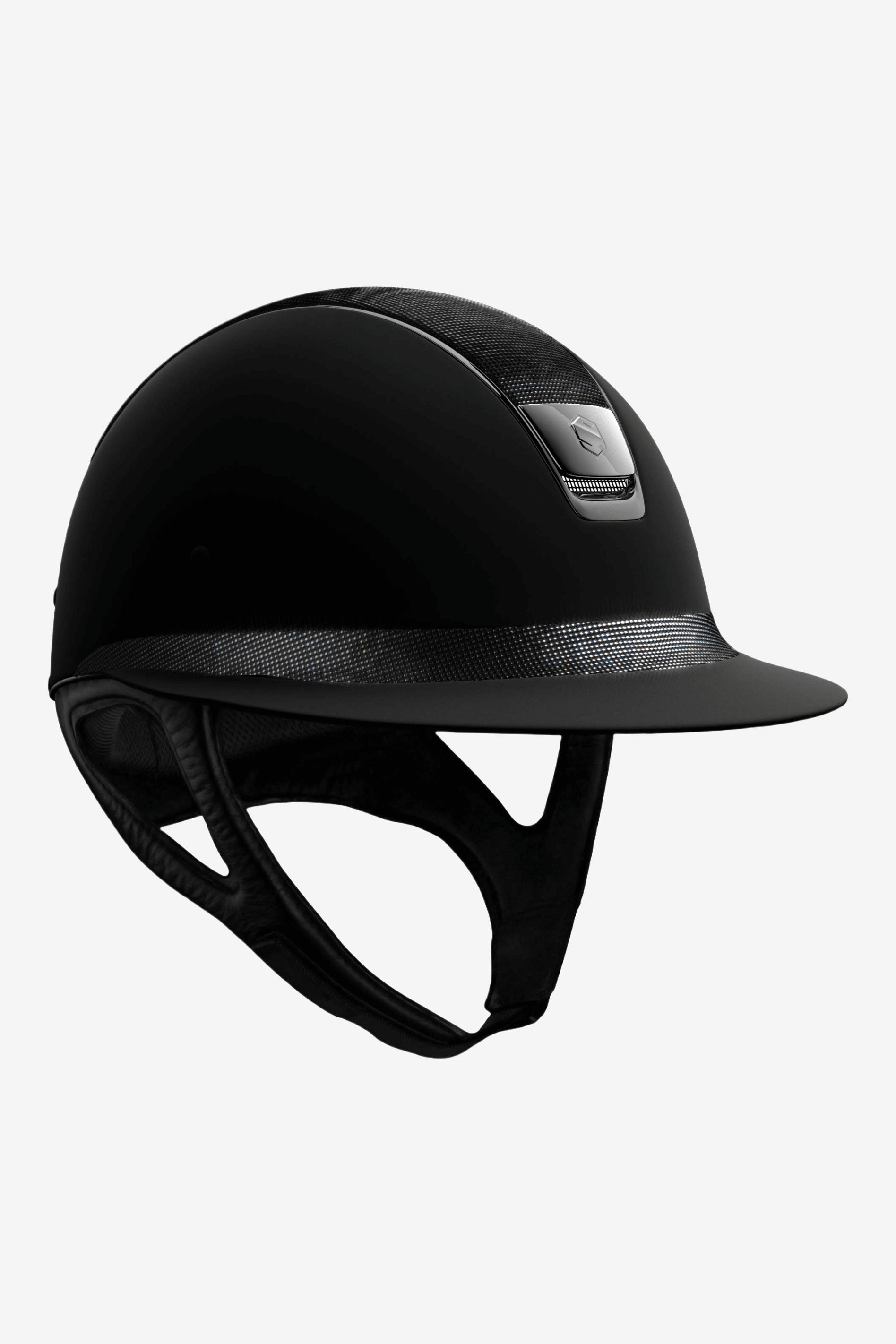 Denne hjelm er udstyret med DRESSURSTROP for at give plads til håropsætninger. Hjelmens nakkebeskyttelse flyttes da op med 2,5 cm.