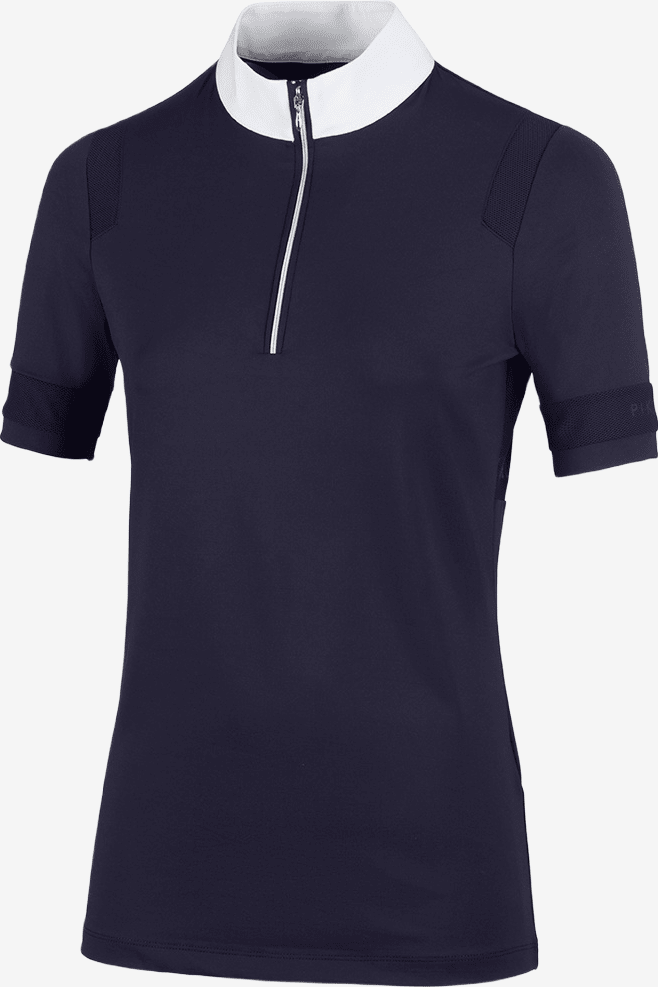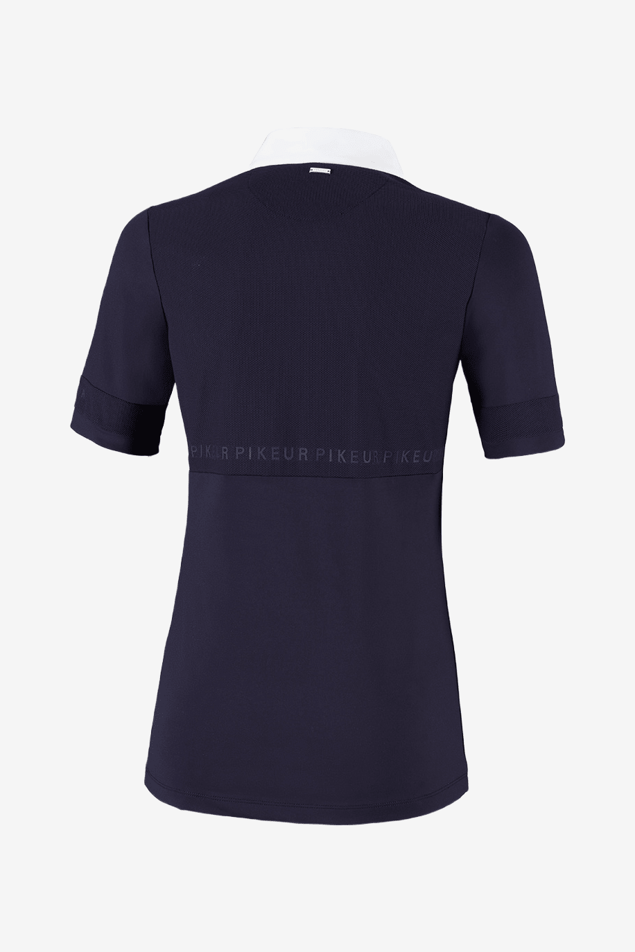 En stilren tävlingströja i funktionsmaterial som känns svalt och lätt emot kroppen. Transporterar bort fukten från din kropp och håller dig bekväm. Meshtyg på övre halvan av ryggen som en snygg och feminin detalj, även meshdetaljer på ärmarna. Pikeur-print mitt över ryggen samt på vänstra ärmen. Kort dragkedja i silver framtill.