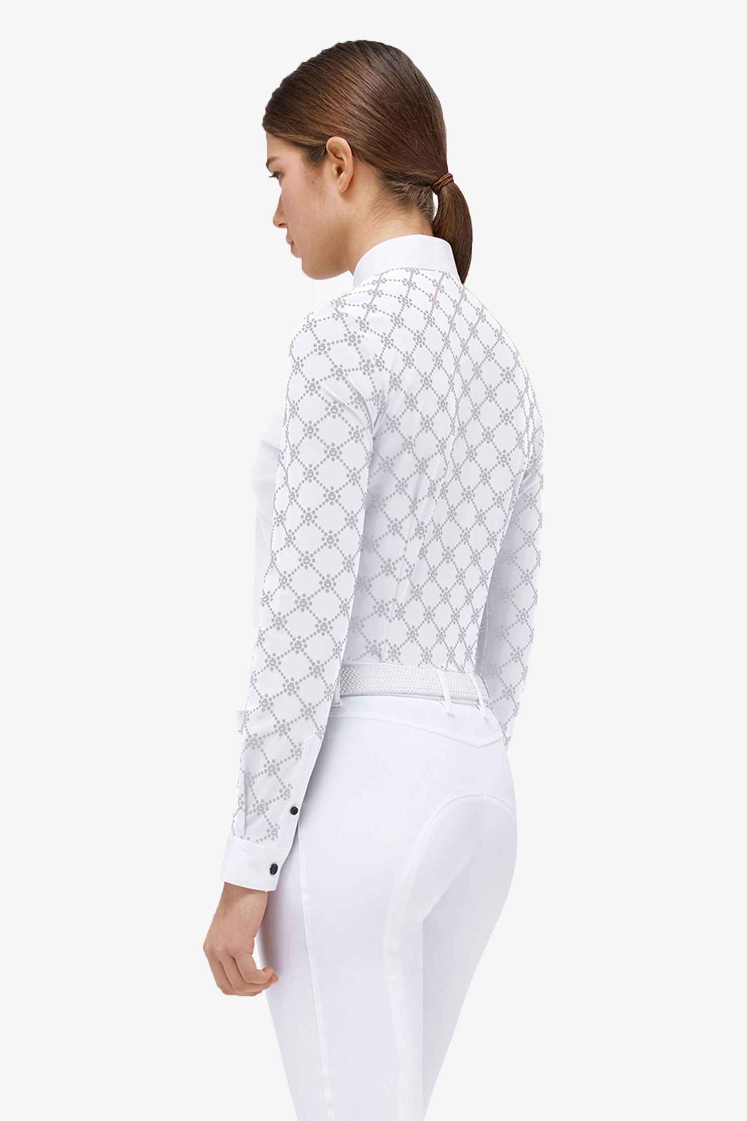 Designad både för ridtävlingar och med syftet att ge en elegant touch till garderoben. Den här tröjan är i smidig elastisk jersey som andas och sträcker sig åt alla fyra hållen och är dessutom helt skrynkelfri.